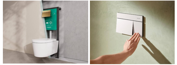 Disponibles en una selección de acabados FinishPlus —blanco brillante y mate, negro mate y cromo—, los pulsadores iFrame permiten personalizar el baño con un toque distintivo y coherente. Gracias a esta variedad